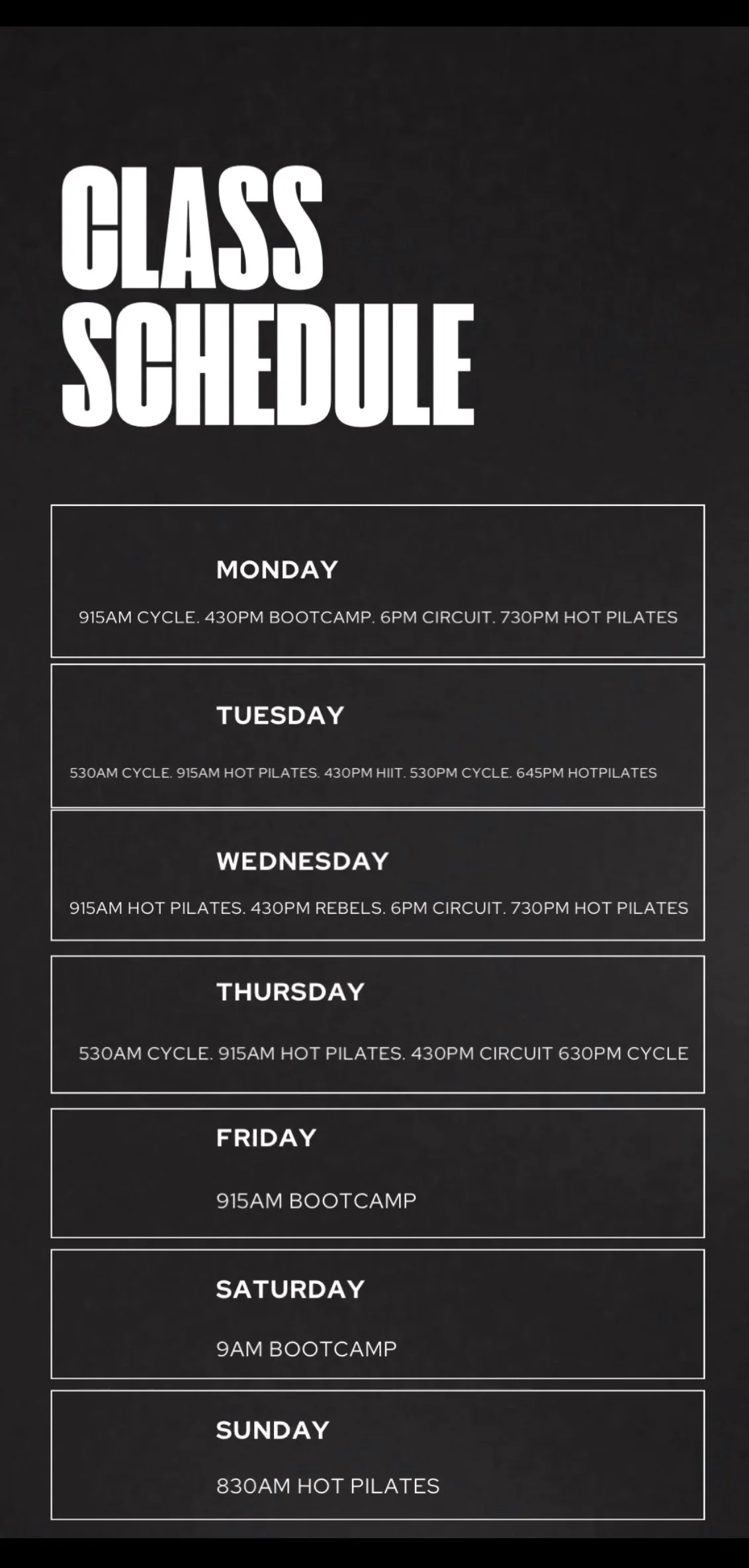 Weekend Classes by 9pm the night before to avoid late cancel fee $20